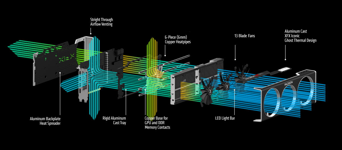 XFX's all new Ghost Thermal design cools your GPU better than ever before. Our new design features a straight through airflow venting to significantly improves cooling and compliments open design of the Ghost Thermal floating shroud design.