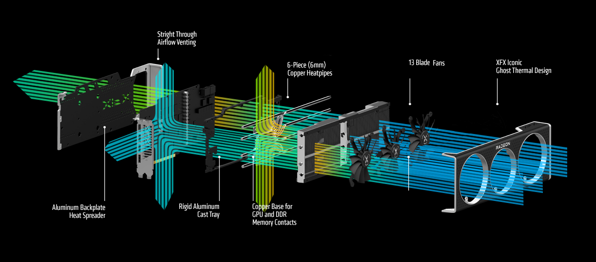 XFX's all new Ghost Thermal design cools your GPU better than ever before. Our new design features a straight through airflow venting to significantly improves cooling and compliments open design of the Ghost Thermal floating shroud design.