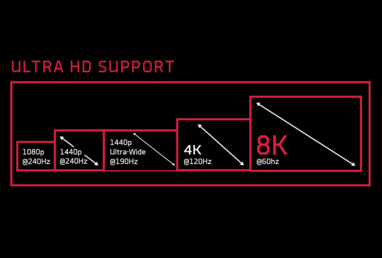 With up to 96 enhanced compute units delivering powerhouse performance, even 8K gaming is now possible at smooth framerates thanks to FSR.